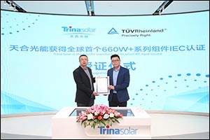 Dubai, United Arab Emirates – 16 February 2021: Trina Solar today announced that its Vertex 660W+ solar power modules have received IEC 61215 and IEC 61730 certification for their performance and safety from TÜV Rheinland. This series generates power of 675W with a conversion efficiency of 21.7%. It is the world's first IEC certification for 660W+ modules issued by a highly ......read more