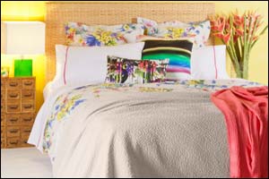 Tropical leaves, parrots and pineapples over immaculate white backgrounds decorate the fabrics of the Amazonia collection. This season, lush jungles with infinite shades of green are combined with the vibrant colours of exotic fruits and the plumage of tropical birds. The inspiration is also reflected in decorative objects and tableware, where animal and floral shapes come to life to create a fresh, summery feel. Raffia, glass beads and wicker details give the collection a more rustic touch.