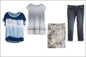 The tribal prints and Bali-style ethnic embroidery add a fresh and seaside air to the offering, in colours such as anthracite and washed denim with touches of yellow and white.