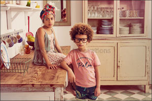 The adventurous collection for boys is inspired by tropical vegetation. Palm tree, hibiscus and flower prints combine with denim both in shorts and shirts. Warm colours take centre stage in the collection.