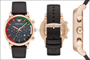 Dubai, October 29, 2015: In honor of UAE National Day, Emporio Armani presents an update to one of its most iconic styles. Complete with dial details in the UAE national colors of red, green and black; a dark brown leather strap, and a rose gold-tone case, this modern chronograph watch is perfect for a celebration.