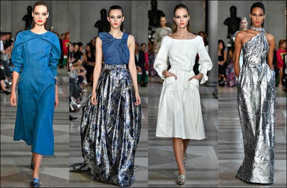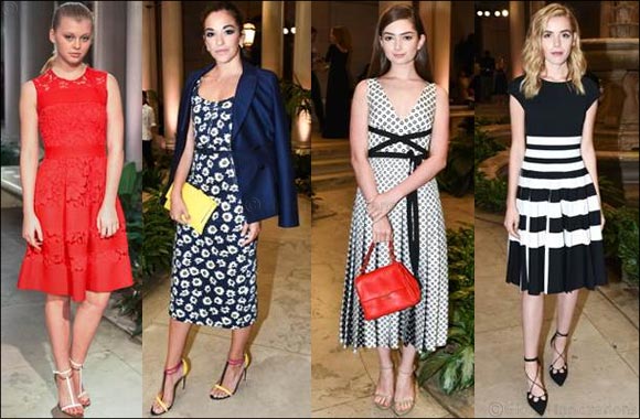 Dubai, UAE, September 19, 2016: The Spring 2017 Collection is a statement on the style codes of Carolina Herrera. Marking three and half decades of elegance and style, this season is an authentic expression of the designer’s stand alone mission, “I want to make clothes that are beautiful and effortless, you don’t have to think about them, only wear them with ease.” Tailoring softened by feminine details and silhouettes in a graphic black and white palette highlighted by metallics—organza, pleated tulle, lace, floral jacquards and unique denim shapes blend day and night—underscoring glamour is synonymous with Carolina Herrera’s take on elegance. Jewelry courtesy of Belperron Featuring new and vintage pieces designed by Madame Belperron CH Carolina Herrera – Celebrity Press Who Whore CH to Carolina Herrera To New York Show