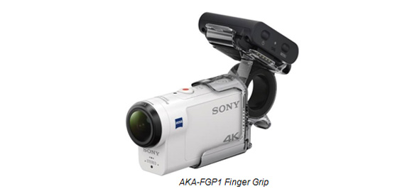 Both the new Action Cam models are powered by the same BIONZ X™ processor which can be found inside Sony’s flagship ɑ7 cameras, and optimised for use in Action Cam. Light is captured via an Exmor R CMOS sensor and the new ZEISS® Lens delivers a more natural image with significantly less distortion than current models.7 The combination of image sensor and processor enables full pixel readout without pixel binning for truer colours and reduced ‘jaggie’ effects. You can capture high-bitrate recordings in 4K at 100Mbps and Full HD at 50Mbps in the XAVC S™ format . The FDR-X3000R can also shoot 120p in Full HD while the HDR-AS300R can shoot 120p in HD for impressive slow-motion footage. The stereo mic further ensures that sound is crisp and clear as a result of Wind Noise Reduction so you can actually record the audio that you want .Features such as the angle adjustment of “wide”, “medium” and “narrow” that have proved to be very popular on the existing Action Cam models have been retained in the new models. A new option of smooth zooming (up to 3x) during recording is also added to the new Action cams. It also offers Loop Recording, high speed recording in Full HD at 100p for stunning slow motion action , Live Streaming via the Ustream platform , Burst Shooting, and the ability to manually adjust white balance and auto exposure shift. The FDR-X3000R and HDR-AS300R benefit from a splash-proof body and is supplied with a fully waterproof Underwater Housing (MPK-UWH1) that is effective down to 60 metres. It also offers an in-built tripod socket, giving the flexibility to attach to a variety of accessories without needing an adaptor or housing and all terminals have been placed on the back of the of camera, making it easier to use HDMI, the Micro USB or the microphone jack even when attaching the camera to various Action Cam accessories. Sony’s own in-built movie creator, Highlight Movie Maker automatically selects points of footage, action scenes, and now people’s faces, to create a short movie, complete with background music. GPS data overlay on video reads your speed data and location information recorded by built-in GPS and generates another video file that displays your route and speed information so that you can archive your adventures with complete accuracy . AKA-FGP1 Finger Grip