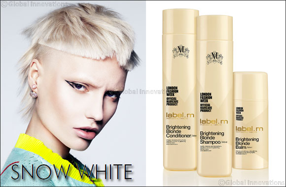 SNOW WHITE Take the peroxide plunge and opt for a platinum shade this party season. A dramatic colour change is the ideal quick fix to lift your look and set you apart from the crowd. Elevate your beautiful blonde locks with label.m Brightening Blonde range for longer-lasting colour.
