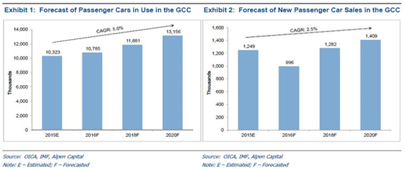 Dubai, 7th December, 2016: Alpen Capital, an investment banking advisory firm, announced the publication of its report on the GCC Automobile Industry. The report provides a perspective of the GCC automobile sector by presenting the current state of the industry, market dynamics, and scope for future growth. It covers the recent trends, growth drivers, and challenges in the industry, along with an outlook until 2020. Lastly, the report profiles some of the prominent automobile companies in the region. “The GCC automobile sector is dynamic and one of the faster growing sectors in the world, primarily owing to the growing population and high disposable income coupled with significant infrastructure developments in the region. The sector however is currently facing a slowdown amid a weak economic environment and low oil prices as consumers scale back new car purchases. Passenger Car sales will remain under pressure in 2017 but are likely to rebound in 2018 and thereon grow at a stable pace in anticipation of a recovery in oil. Other factors fueling growth include increasing disposable income, growing population and availability of attractive financing options in the country,” says Sameena Ahmad, Managing Director, Alpen Capital (ME) Limited “We are witnessing a lot of activity in the automotive manufacturing sector as well as possibilities of M&A transactions resulting in consolidation. Hence, despite a recent slowdown in demand for automobiles in the backdrop of sluggish economic conditions, the GCC region continues to offer immense opportunities in the areas of automotive manufacturing, aftermarket, and new technology development. Inherent growth drivers such as an expanding and well-heeled consumer base, high urbanization rate, government investments to boost domestic manufacturing and the significant upcoming infrastructure and tourism developments are likely to driving demand for vehicles in the region over a long term and lead to a steady growth in the GCC automobile sector,” says Krishna Dhanak, Executive Director, Alpen Capital (ME) Limited Industry Outlook According to Alpen Capital, number of passenger cars in use in the GCC is expected to grow at a 5.0% CAGR from an estimated 10.3 million in 2015 to 13.2 million in 2020. New passenger car sales are projected at 1.4 million in 2020, compared to 1.2 million in 2015. Although new sales declined in 2016 and will be under pressure in 2017, we expect to see steady growth starting 2018 as the economic environment stabilizes and creates pent-up demand. The anticipated growth is slower compared to that during last five years in view of the near-term softness in economic activity, as consumers tighten discretionary spending and delay buying new cars.