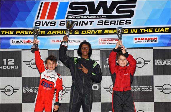 Kumaran tops SWS Junior Cup Dubai, UAE, 11 April 2017: Fuelled by a narrow defeat in the preceding round of the Sodi World Series (SWS) Sprint Series, Saeed Al Mehairi bounced back to take a commanding SWS Senior Cup win at the Dubai Kartdrome on Monday night (10 April). With a best lap time of 1:11.188, Rami Azzam opened the contest as the top qualifier, 0.127 seconds ahead of Al Mehairi and 0.193 seconds ahead of Ahmed Al Hammadi in third position. The three drivers began Race One fighting for the lead with Al Hammadi dropping back to sixth position after spinning out. The other two karts carried on and Al Mehairi took control of the race and held on for the win. Azzam harassed the Emirati on every turn but was still 0.598 seconds behind at the finish line. In the opening lap of Race Two, Azzam managed to block out Al Mehairi on the main straight but his lead didn’t last long. Al Mehairi took back the frontrunner position while Azzam dropped back into a pack of skirmishing karts. Al Hammadi moved up to challenge Al Mehairi, sticking to his back bumper and waiting for a chance to overtake. Al Mehairi defended his position well managing to keep his kart in front until the chequered flag, 0.119 seconds clear of Al Hammadi. Romaldo Labrooy followed in for third place. After the race points were computed, Saeed Al Mehairi reclaimed his spot on the top step of the SWS Senior Cup podium with 80 points. Ahmed Al Hammadi earned 65 points and second place, just one point ahead of Rami Azzam who claimed third. Five karts were hit with penalties in the second race and Al Mehairi was grateful not to have been caught up in the drama. He said: “Things happen sometimes in a race but I’m glad that everyone is happy now. Even after the race they were shaking hands which is really good.” Newcomer Pierre Oliver Chevalier made an instant impact in the Masters category, taking top honours over veteran Heiki Eelma in second place. Adrian Jones secured third.