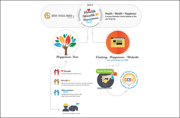 The campaign is planned in line with UAE’s ‘Year of Giving’ programme Dubai, June 12, 2017: Century Financial Brokers, the region's leading financial brokerage firm and online trading service provider, has launched the “Health, Wealth & Happiness” (HWH) initiative this holy month of Ramadan. This is in keeping with the UAE's President His Highness Sheikh Khalifa bin Zayed Al Nahyan’s declaration of 2017 being the ‘Year of Giving’. Century Financial Brokers has launched this campaign to create an atmosphere of happiness through donating items related to hygiene, discounts on money transfer and mobile calling vouchers. The campaign aims to share and multiply happiness with the underpriviledged. It is designed to cater to labour camps in the UAE. The firm has also launched an online platform initiative to donate money to the Dubai Center for Special Needs (DCSN). The ‘Year of Giving’ seeks to spread the values of giving across the society and take forward the vision of the leaders to launch new initiatives that establish the value of giving in the UAE. Commenting on the HWH initiative, Mr. Bal Krishen, CEO of Century Financial Brokers, said, “Each year we are known to create unique experiences for our patrons and associates during our special corporate iftar. This year too, we have created a charity experience through the Health, Wealth & Happiness initiative”. “The initiative has a two- fold approach. The first was conducted at the grand Iftar hosted at the JW Marriott Marquis for our clients and patrons. A “Happiness Tree” was installed at the venue and the guests were requested to decorate the Happiness Tree with three coloured leaves. Each coloured leaf respresented different parts of the initiative - Red for Health, Yellow for Wealth and Blue for Happiness. The response was overwhelming and we are very pleased with the outcome. We will be donating this to the labour camps in Dubai on their behalf,” he added. Century Financial Brokers will provide the underpriviledged with Happiness Boxes containing: (a) Health/hygiene related goods (b) Discount vouchers for money transfer charges, to send across their money to their families (c) International calling cards to call their loved ones back home “The second part of this charity initiative will continue on a specially developed website wherein everyone is invited to visit the Century Happiness website, and click on the HWH unit featured on the website. Every click on the HWH unit will lead to US $1 being donated by Century on behalf of the guest or visitor. The participation in this online charity initiative will continue till the end of Ramadan. The charity amount is based on the number of clicks with an upper limit of 400 clicks per day. The equivalent amount to 4000 clicks over a period of 10 days will be donated to the Dubai Center for Special Needs (DCSN), a non-profit organization that provides the highest standards of service in specialized education and therapy for children with various disabilities,” Mr. Krishen further said. Century Financial Brokers has also partnered with volunteer.ae, an inititative by the Emirates Foundation to create a large pool of volunteers for public and private services, to distribute the Happiness Boxes in the labour commnity in Dubai. Through this initiative, Century Financial Brokers offers everyone a chance to participate in the ‘Year of Giving’ by offering charity either through the happiness tree or the happiness website and with Century donating the actual proceeds to those in need on behalf of everyone participating in this initiative.