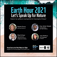 • Scientific evidence shows that nature loss is linked to an increased risk of pandemics. • On March 24, ‘Earth Hour 2021 - Let’s Speak Up for Nature’ virtual event will spotlight inspiring UAE-based speakers across businesses, the government and youth, who are making a difference within their communities. • To ensure public safety as COVID-19 restrictions continue, Earth Hour will be celebrated virtually. Abu Dhabi, United Arab Emirates - March 21, 2021: On Saturday, 27 March at 8:30 p.m. UAE time, Emirates Nature-WWF is inviting the UAE community to virtually participate in Earth Hour, one of the largest global grassroots movements for the environment, which will bring together millions of people, businesses and leaders from around the world to shine a spotlight on the urgent need to address nature loss and climate change. With evidence pointing towards a close link between nature's destruction and rising incidences of infectious disease outbreaks like COVID-19, Earth Hour 2021 will unite people online to speak up for nature. The occurrence of several catastrophic incidents last year including extreme weather events, devastating wildfires and the COVID-19 outbreak highlighted that preventing nature loss is crucial for safeguarding our future. A global assessment of biodiversity targets showed that the world failed to meet the 2020 deadline for achieving the targets set for preventing nature loss a decade ago. Earth Hour marks a pivotal opportunity for civil society organisations, individuals, businesses and environmentalists to Speak Up for Nature and set nature on a path to recovery by 2030. “Human health and the health of our environment are inextricably linked. Our collective resilience, well-being, nutrition, and ability to avert disease is fully connected to the food we eat, the water we drink, the air we breathe, and the ways we interact with nature. Along with dealing with the challenges of the pandemic, 2020 was also the year when nature and biodiversity rose to the top of the political and corporate agenda like never before, and when the interdependence of the nature, climate, and health crises was strongly recognized by UAE leadership” said Laila Mostafa Abdullatif, Director General at Emirates Nature-WWF. “Earth Hour 2021 gives us a golden opportunity to join hand-in-hand and drive change together, as an active civil society, towards a green recovery for the UAE.” continued Abdullatif. Prior to Earth Hour, Emirates Nature-WWF will host a virtual event ‘Let’s Speak Up for Nature’ on March 24, at 4:30p.m where individuals, businesses, government entities and youth will speak up for nature. ‘Let’s Speak Up for Nature’ focuses on the power of storytelling where invited speakers will share stories with the goal to uplift attendees, motivate them to make a difference, and most importantly drive them to embracing a more sustainable mindset. Along with other speakers, Sophie Corcut, Brand & Sustainability Manager at Spinneys Dubai LLC and Wael Al Awar, Architect & Co-curator for the National Pavilion UAE will be making an appearance at the virtual event to share some inspiring stories. Emirates Nature-WWF is calling the UAE community to become the catalyst for urgent change by participating online to raise awareness. To take part in the first-ever Earth Hour Virtual Spotlight event this year, the community is encouraged to share a must-watch global hero video through their social media accounts which is set to go live by Emirates Nature-WWF and Earth Hour global teams as soon as all lights are switched off. By using the power of the network which includes over 190 countries to take over the internet on the night of Earth Hour, this will put the spotlight on our planet, the issues we face, and our planet within it all. Healthy natural ecosystems are the cornerstone of thriving, equitable and sustainable societies. Our current socio-economic models are leading to the devastating destruction of nature, which is increasing our vulnerability to pandemics, accelerating climate change, and placing livelihoods at risk.'' said Marco Lambertini, Director General, WWF International. ''2021 is a crucial year for humanity. As the world tries to turn the tide and recover from the ravages of the COVID-19 pandemic and rebuild itself, we need to put nature at the centre of our recovery efforts to future proof our economies and societies. Earth Hour is a critical moment for individuals, leaders, and environmentalists to unite and call for urgent action to reverse nature loss and secure a nature-positive world by 2030.” added Lambertini. Participants can also sign up to the ‘Zero to Climate Hero’ challenge where they will embark on a 5-week journey that will empower guests with simple yet impactful tips to help reduce their carbon footprint and combat the climate crisis. By signing up to the challenge, participants will receive an email per week giving them the tips and tricks on how to play a role in combatting climate change. To sign up to the ‘Zero to Climate Hero’ challenge, click the link here. Change makers will have the opportunity to speak up for nature. A good way to do their part for nature is volunteer in nature activities where they will cultivate their skills, collaborate with inspiring individuals across the UAE and build a better future where people and nature thrive. By joining the 5-week programme, participants will become responsible global citizens by co-creating the blueprint for sustainable development in the UAE. Started in Sydney in 2007, Earth Hour has grown to become one of the world's largest grassroots movements for the environment.