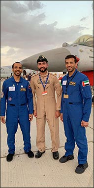 United Arab Emirates - April 15, 2021: Astronaut Mohammad AlMulla, shared a great photo on his social media platforms and commented, “In 2019, I met astronauts Hazzaa AlMansoori & Sultan AlNeyadi for the first time during the Dubai Airshow. It was an unforgettable moment that fostered my passion for space exploration. Soon, we will meet in the blue astronauts’ suit & as members of the UAE Astronaut Programme.”