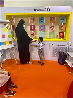 Sharjah, May 20, 2021: The Health Promotion Department (HPD) at the Supreme Council for Family Affairs in Sharjah (SCFA) is taking part in the 12th Sharjah Children's Reading Festival 2021 (SCRF), which is currently underway at the Expo Centre Sharjah and is organized by Sharjah Book Authority under the theme 'For your imagination'. For that purpose, the Department has developed a distinctive program full of interactive initiatives and workshops that aim to raise the health awareness of community members and enhance the children's health culture in particular. The HPD's pavilion is seeing a high turnout of visitors who expressed their admiration for the awareness programs and recreational activities that raise their children's awareness about the current health issues, especially those related to Covid-19 prevention. The program also includes interesting interactive educational competitions to encourage children to practice sports and steer away from bad food habits to enhance their physical health and prevent diseases.