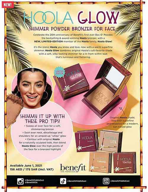 Benefit Cosmetics celebrates the 20th anniversary of its first ever Box O’ Powder, the bestselling & award-winning Hoola bronzer, with a NEW, LIMITED-EDITION member of the Hoola family, Hoola Glow! It’s the iconic Hoola you know and love, now with a warm superfine shimmer. Hoola Glow combines original Hoola’s cult-favorite shade with a soft, silky-looking shimmer for a lit-from-within look that’s luminous and flattering. Available starting June 1, 2021.