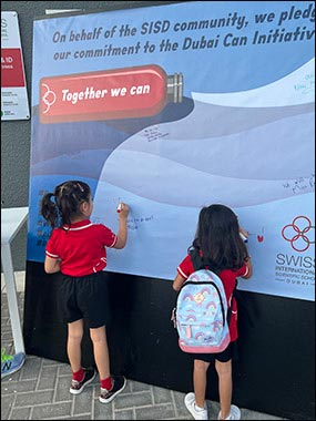• For World Water Day 2022 Swiss International Scientific School in Dubai will be asking all members of its community to pledge their commitment to the water saving initiative and be part of Dubai Can. • Dubai Can is a recently launched sustainability initiative by His Highness Sheikh Hamdan bin Mohammed bin Rashid Al Maktoum, Dubai Crown Prince and Chairman of The Executive Council of Dubai. • World Water Day celebrates water every year on 22 March and raises awareness of the 2 billion people living without access to safe water. • Swiss International Scientific School Dubai campus is a sustainable school and is eco-friendly, consistently using less energy to create a comfortable and healthy environment. DUBAI, 21st March 2022: Swiss International Scientific School Dubai (SISD) has already been making a big splash ahead of World Water Day, a celebration of water that takes place globally on 22 March. The school will be having a giant pledge board in reception and asking all members of the community to sign the pledge to commit to the water initiative from 18 March. Widely known as a sustainable school, students at the school are being actively encouraged to bring to school their own bottles and refill them at the no less than 44 communal water fountains located at key spots on campus. The school has calculated that this alone will save around 25,000 500ml water bottles each month, which is something that the school has been acting on for a number of years and is line with the aims of the Dubai Can, an initiative launched in February 2022 by His Highness Sheikh Hamdan bin Mohammed bin Rashid Al Maktoum, Dubai Crown Prince and Chairman of The Executive Council of Dubai with an aim to reduce single-use plastic water bottle waste in the city. Dubai Can is also taking the steps to create awareness around water and plastic bottle waste, but on a much larger scale and throughout Dubai, of which SISD is proud to be taking part. “The school has been encouraging pupils to refill their own bottles since it opened seven years ago,” said Ruth Burke, Principal at SISD. “We are delighted to be saving over 25,000 single-use water bottles per month, and in the hot months this increases to over 40,000. “As a sustainable school, initiatives like this are a key part of our education; instilling a sense of responsibility and passion for the protection of our planet in our students,” added Mrs Burke. Helen Milner, Sustainability Coordinator at SISD, reveals how SISD’s efforts to create water awareness and single-use plastic bottle waste begin early. “From age three years old, all students are encouraged to bring their own water bottle and refill at school. The sports hall is certainly where the most water is consumed, and this initiative fully supports our mission for healthy and active students.” The cause has also caught the attention of the secondary school students at SISD, who are creating a competition that aims to actively encourage students to design a SISD water bottle and coffee cup for use by both students and staff to help further reduce the use of single-use plastic in the school.