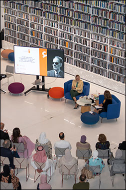 In the first discussion panel with Dr. Omar Abdel Aziz, moderated by Dr. Maryam Al-Hashemi, about the life of Taha Hussein, Dr. Abdel Aziz stressed that the most important thing that Taha Hussein did was to make critics and writers in the Arab World pay attention to new literary genres other than poetry. Hussein was influenced by the different literary genres that he was introduced to in France, especially the novel, and he wrote influential works to promote these new literary genres such as the novel and theater, where he is considered the first to translate classical Greek works that influenced all Western literary production into Arabic. Hussein also dabbled with biography writing and other marginalized literary genres.