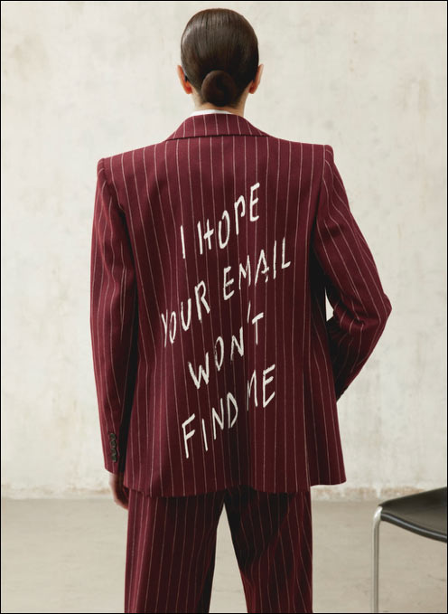AX&Co. is thrilled to announce the latest chapter in its &Co.llaboration series for AW25, created with artist Pietro Terzini: HERE WE GO AGAIN. This is the second time that MAX&Co. has joined forces with multi-disciplinary Milan-based creative Terzini, who is renowned for his uplifting, insightful, witty word art. HERE WE GO AGAIN is a reference not just to the second &Co.llaboration, but also to Terzini’s personal inspiration. A deeply individual collection for the artist, his jumping off point for the capsule is his personal passion for hip-hop and streetwear, a world he fell in love with in the early 2000s. Influenced by the world of music and film, Terzini draws on archetypes of Americana - denim, bomber jackets, flannel shirts, beanie hats - and updates them for now. No long confined to menswear, here they take on key roles in the genderless collection. Terzini’s perceptive and playful slogans (‘I WAS RIGHT’, ‘HEARTBREAKER’, ‘SO FAR SO GOOD’) once again take centre stage, often relating directly to the garment they’re found on yet flipping expectations in the process. A button-down shirt has ‘I DIDN’T STUDY AT OXFORD’ inscribed on the back, while the plaid shirts bear the pun ‘I’LL CHECK AND LET YOU KNOW’. Sweaters and T-shirts are emblazoned with ‘GOOD VIBES’ on the front, and ‘OR GOOD BYES’ on the reverse; hoodies get straight the point with ‘I’D RATHER STAY HOME’. The satirical spirit continues onto workwear, including Terzini’s take on the pinstripe suit he remembers from iconic gangster films such as ‘The Godfather’ and ‘Scarface’. The boxy, tailored blazers featuring to-the-point, tongue-in-cheek missives ‘I HOPE YOUR EMAIL WON’T FIND ME’ and ‘I NEED A DRINK’. In addition to ready-to-wear, the collection also includes accessories such as socks, hats, a duffel bag and an umbrella (‘I PREFER SUNNY DAYS’).