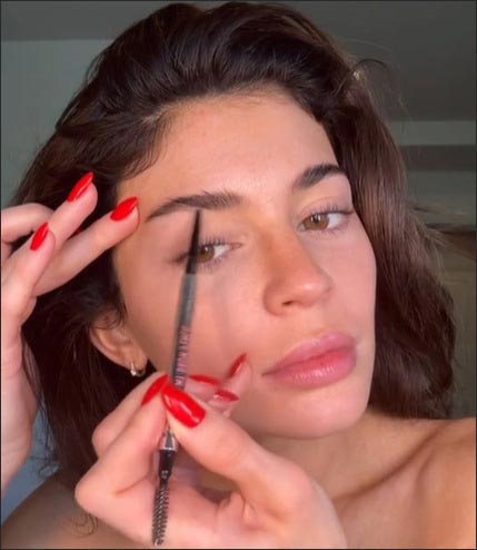First up: fill, define, and serve. Our all-time favorite Precisely, My Brow Pencil is the go-to tool for achieving those natural, hair-like strokes Kylie loves. Start at the base of the brow and use short, light, upward flicks in the direction of natural hair growth. Available in 12 shades, it's the ultimate way to build soft definition that still looks like your real brows—just better.