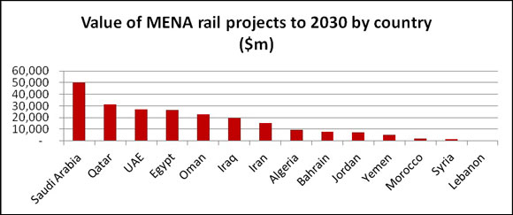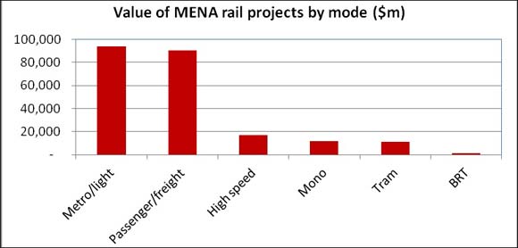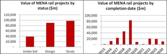 Abu Dhabi, UAE; 15 October 2013 - Opportunities in the Middle East & North Africa (MENA) region's $225 billion rail, metro, tram and bus rapid transit (BRT) capital investment programme to 2030 will be highlighted at the MEED MENA Rail & Metro Summit which opens at the Beach Rotana Hotel in Abu Dhabi on 29 October. Almost 50 expert speakers representing government and private businesses in the GCC, the wider Middle East and the world will address the event with over 300 delegates expected to attend the conference. Figures provided by MEED Projects show that there are now 108 separate railway, metro, monorail, tram and BRT projects under bid, under design or under study in 14 MENA countries. More than 50 of them with a combined value of almost $140 billion are in the GCC. Saudi Arabia has the greatest potential with projects worth $50 billion due to be completed by 2025, MEED Projects show. Rail, metro, tram and BRT projects in Qatar worth more than $30 billion are scheduled to be finished by 2020, ahead of the Qatar 2022 World Cup Finals. The third biggest rail market is the UAE, where $27 billion worth of projects is due for completion by 2030. (see Chart 1) (Chart 1: Value of MENA Rail Projects to 2030 by Country. Source: MEED Projects) Philippe Casgrain, vice president for Europe, the Middle East & Africa at Bombardier Transport will open the summit with a presentation outlining the key challenges those involved delivering hundreds of billions of dollars of railway projects face in the Middle East region. One of the biggest issues is pressure on the Middle East project supply chain and competing demands for steel, cement and skilled labour from other sectors of the region's booming projects market. About $2.2 trillion of projects are under bid, design or study, about half of this figure in the GCC. MEED Projects figures show that Saudi Arabia alone has a pipeline of more than $350bn of projects with a value greater than $1,000 million. The project pipeline in rail, metro, tram and BRT projects is formidable. According to MEED Projects figures, almost $40bn of projects are under bid in the sector at present. But about $90 billion are under design and more than 75 per cent of projects under bid, design and study are due to be finished by 2020. (Charts 2 and 3) (Chart 2: Value of Rail Projects by status. Source: MEED Projects) (Chart 3: Value of Rail Projects by completion date. Source: MEED Projects) Joining the opening keynote session at the MEED Mena Rail & Metro Summit will be representatives of major urban rail, tram and BRT programmes. They include Dr Mohammed Montazeri, deputy managing director for planning and logistics at the Tehran Urban & Suburban Railway Company. Iran has more than $15 billion of major projects in the pipeline and two-thirds of this planned investment will be in the urban rail network of the Iranian capital by 2025.  MEED Projects figures (see Chart 4) show that more than $90 billion of metro and light rail projects are planned in the MENA region by 2030. Planned passenger and freight rail investments of a similar value are projected in the same period. High speed railway projects of about $15 billion are under study. Monorail and tram projects worth more than $10bn apiece are planned. There is a single large-scale investment in BRT, a $1,500 million project in Abu Dhabi. Prequalification of companies wishing to work on the project is now under way. But other cities are now seriously considering BRT as an alternative and supplement to new urban rail and tram ways.